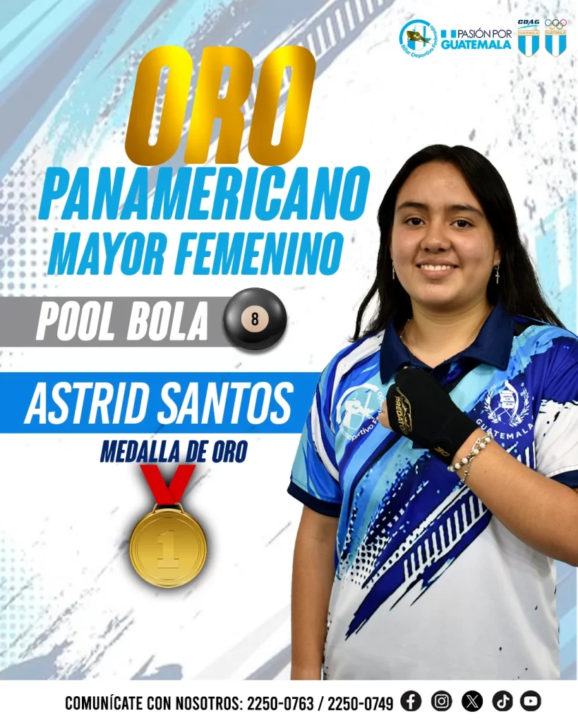 Con tan solo 16 años, Astrid Santos sorprendió al continente al conquistar la medalla de oro en la categoría máxima femenina del Campeonato Panamericano de Pool Bola 10, marcando un hito sin precedentes para Guatemala.